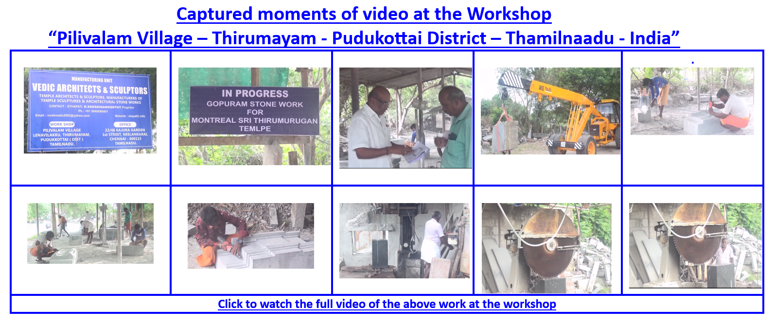 Click each link block below for video clips of the current progress of the Granite workshop in Pudukottai – India – February 2025