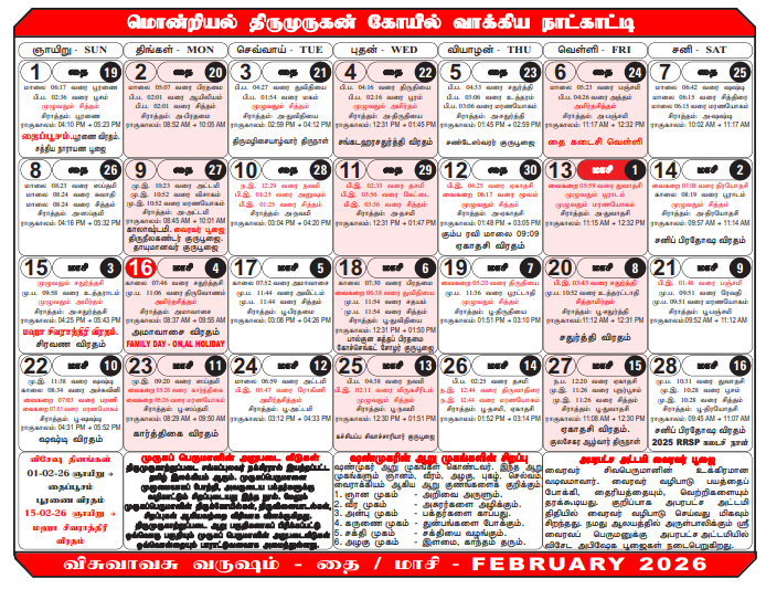 அழுத்தினால் 2026 ஆண்டு முழு வருட தமிழ் பஞ்சாங்க நாட்காட்டியை பார்க்கலாம். Click to view the full Tamil almanac calendar for 2026